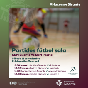 Desde la Concejalía de Deportes del Ayuntamiento de Sisante se informa de la celebración de los partidos de la liga de fútbol sala de las escuelas deportivas. Las diferentes categorías del equipo EDM Sisante se