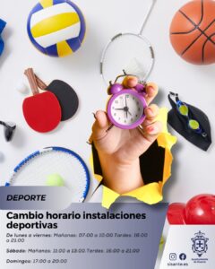 Cambio de horario de las instalaciones deportivas de Sisante La Concejalía de Deportes del Ayuntamiento de Sisante informa que a partir del lunes 29 de septiembre las instalaciones deportivas municipales adoptarán el horario de invierno.
