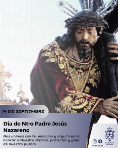 Feliz Día del Patrón: Nuestro Padre Jesús Nazareno El Ayuntamiento de Sisante celebra hoy, 14 de septiembre de 2025, una jornada muy especial para todos los vecinos y vecinas: el Día de Nuestro Padre Jesús