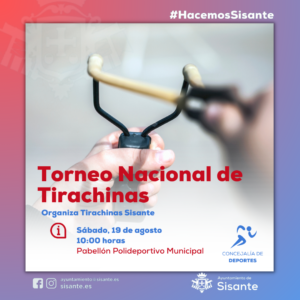 Un año más, Tirachinas Sisante en colaboración con la Concejalía de Deportes del Ayuntamiento de Sisante, organiza el Torneo Nacional de Tirachinas. Sábado, 19 de agosto. 10:00 horas. Pabellón Polideportivo Municipal. Inscripciones: 3 euros niños