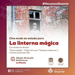 La Concejalía de Cultura y la Concejalía de Educación del Ayuntamiento de Sisante han organizado la proyección de películas de cine mudo acompañadas con música en directo «La linterna mágica». Se podrán visualizar algunos clásicos