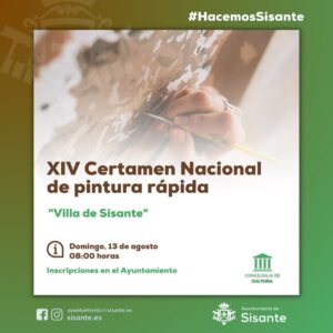 La Concejalía de Cultura del Ayuntamiento de Sisante organiza un año más el XVI Certamen Nacional de pintura rápida “Villa de Sisante” donde podrán participar todos los artistas que lo deseen, residentes en España y