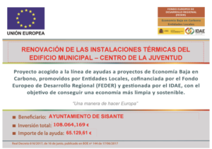 Renovación de las Instalaciones Térmicas del Edificio Municipal – Centro de la Juventud Desde el Ayuntamiento de Sisante informamos que el Edificio Municipal del Centro de la Juventud se embarcará en un proyecto de renovación