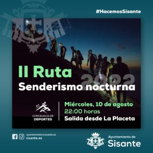 El próximo miércoles, 10 de agosto, tendrá lugar la II Ruta de Senderismo Nocturna de este año. Comenzará a las 22:00 horas y se saldrá desde La Placeta.