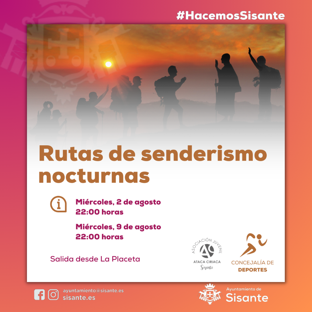 La Concejalía de Deportes del Ayuntamiento de Sisante junto a la colaboración de la asociación juvenil «Ataca Ciriaca» han organizado rutas de senderismo nocturnas.