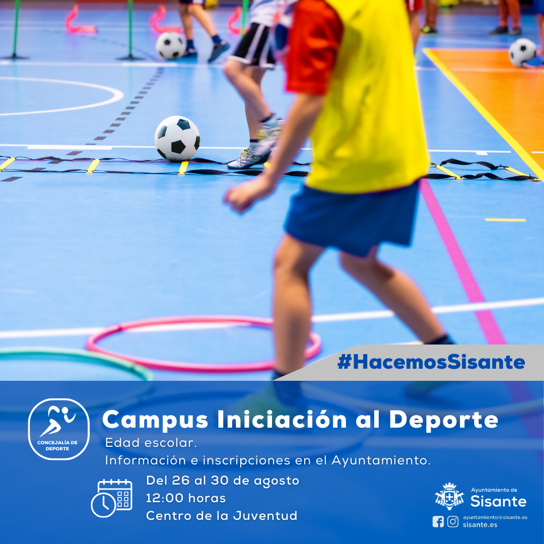 Desde la Concejal铆a de Deportes del Ayuntamiento de Sisante te informamos que pr贸ximamente dar谩 comienzo el Campus de Iniciaci贸n al Deporte para ni帽os y ni帽as en edad escolar.