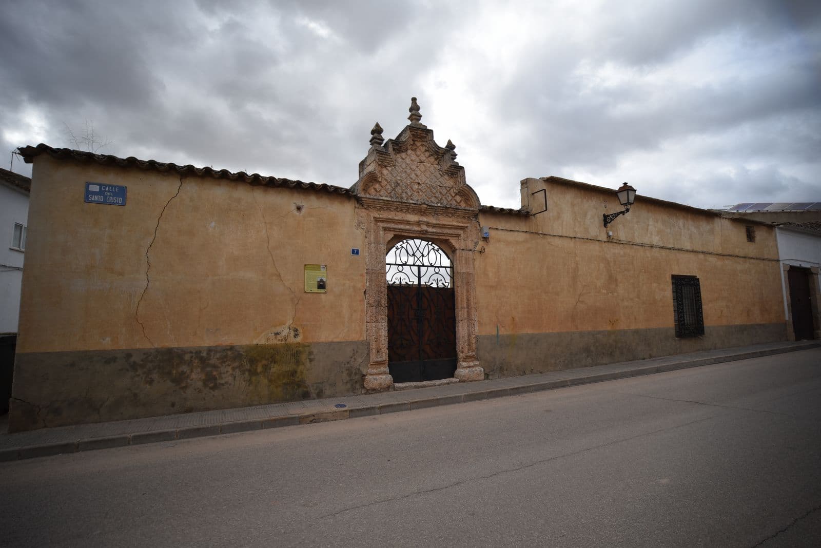 Tiene una altura con portada de acceso en piedra, con arco rebajado por dos jambas lisas y un dintel que lo recogen. Se remata con una cornisa sobre la cual se sitúa un frontón partido, coronado por tres pequeñas agujas que hace de esta portada muy singular respecto al conjunto urbano.
