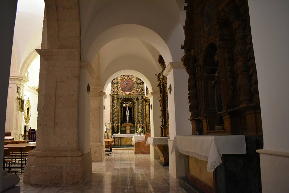 En el interior de la iglesia se encuentran retablos barrocos de importante manufactura, con columnas salomónicas. En uno de los laterales se encuentra el sepulcro del Padre Hortelano, fundador del Convento de Clarisas Nazarenas, actual Monasterio.