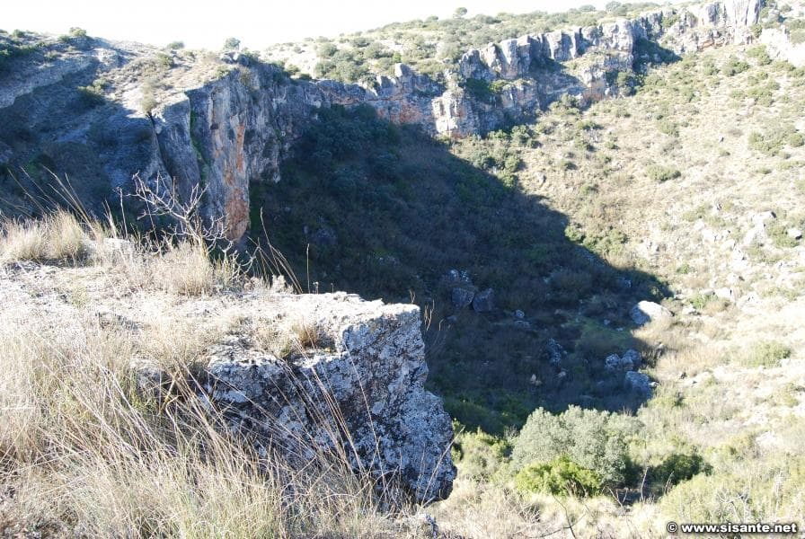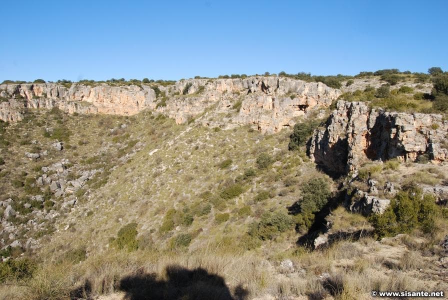 El PR 72 recorre las tierras de labor al este de Sisante hasta llegar al Río Júcar. Tomamos la pista que conduce al Molino de Viento, junto a la CUV – 8306, en dirección este. Bordeamos la Hoya Grande hasta el cruce de unión con la vueta del sendero. Seguimos por la derecha, bordeando el Campo de Aviación de la Guerra Civil y los Polvorines, de los que aún quedan restos.